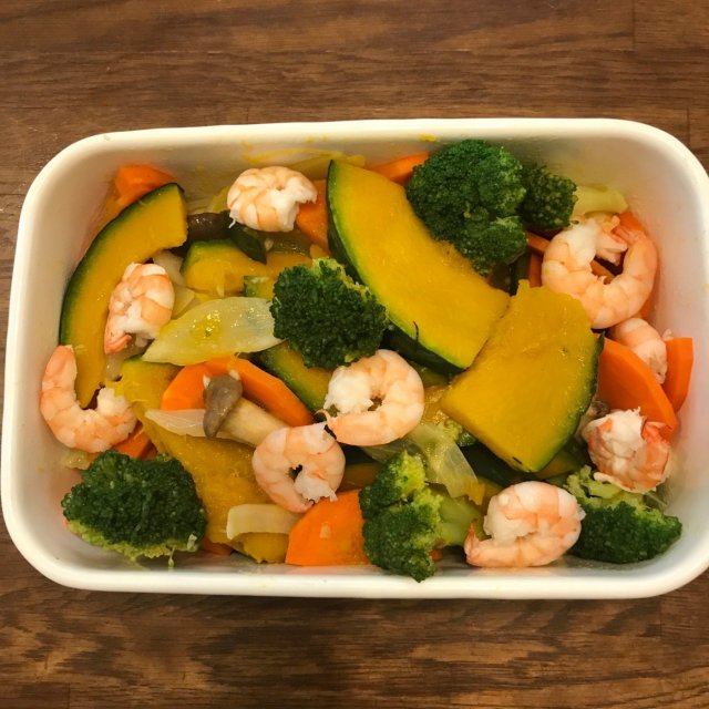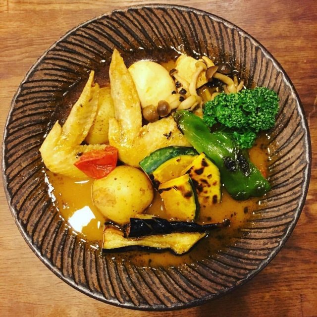 スープカレーが食べたい!と家族がいうので 初めてスープカレーをつくってみました。 香辛料から揃えるのは難易度がたかすぎるので、手抜きで市販のスープカレーの素を利用することに。 野菜たっぷりのスープカレーにしました。 まず、かぼちゃ、ナス、ピーマン、手羽先を焼いた後いったんお皿へ。 バーミキュラに、ジャ...