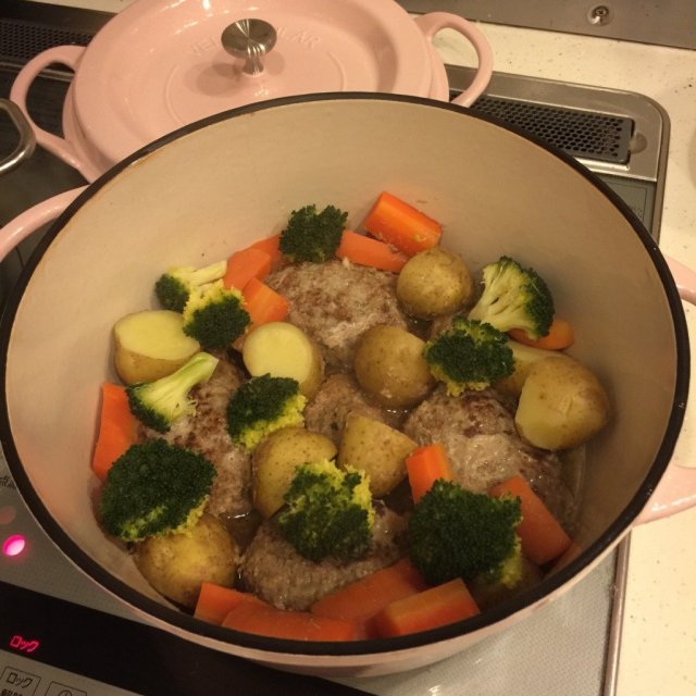 今回はレシピブックの野菜のにんじんとブロッコリーの他にジャガイモを追加してみました。